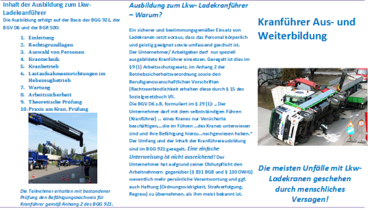 In unserem Hausen führen wir auch Schulungen zum sicheren Führen der Ladekräne.